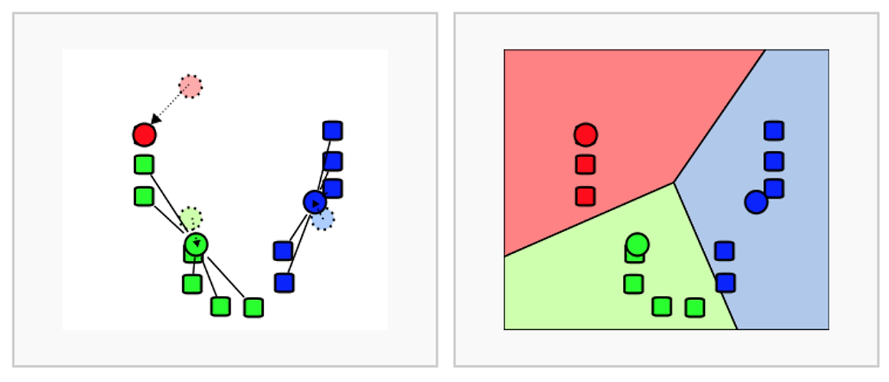 - 해당 중심점과 거리가 가까운 데이터를 그룹화