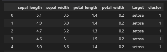 iris_df2['cluster'] = kmeans.labels_ # 0, 1, 2 로 그룹화