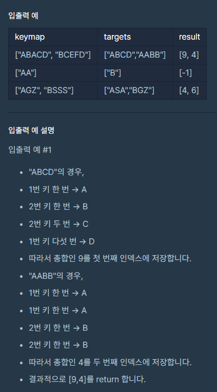 프로그래머스 | 대충 만든 자판 (파이썬) 본문