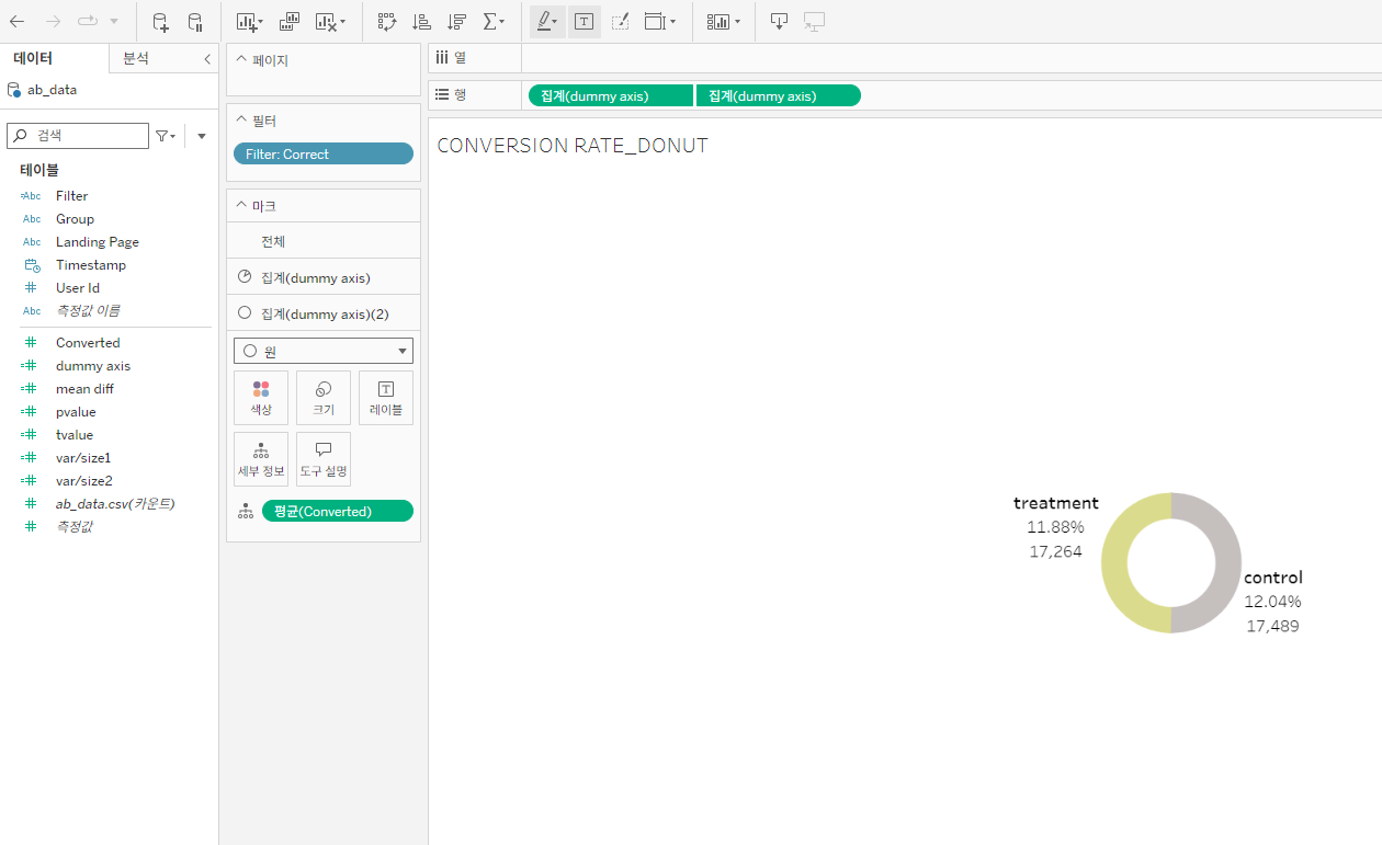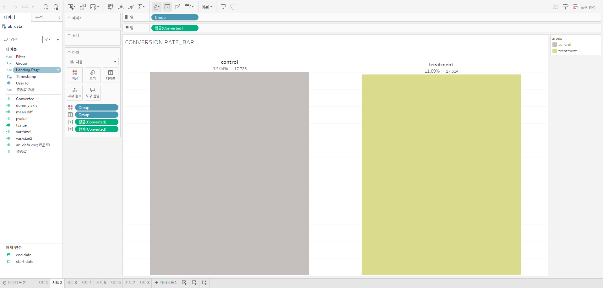 [Tableau] 랜딩 페이지 A/B 테스트 대시보드 제작 과제 실습 본문