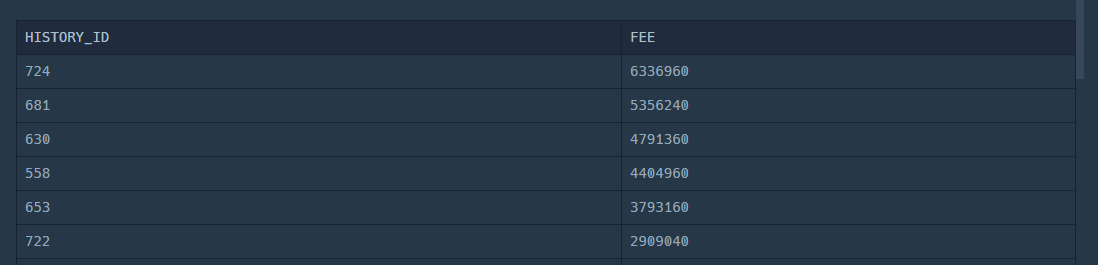 SELECT HISTORY_ID, ROUND(DAILY_FEE*DAYS*((100-IFNULL(DISCOUNT_RATE,0))*0.01)) AS FEE