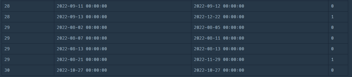 HAVING SUM(IF(START_DATE > '2022-11-30' OR END_DATE < '2022-11-01',0,1)) = 0