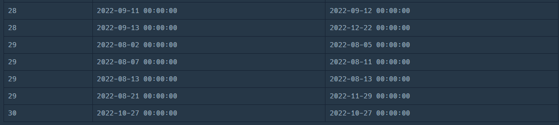 WHERE START_DATE > '2022-11-30' OR END_DATE < '2022-11-01' GROUP BY 1)