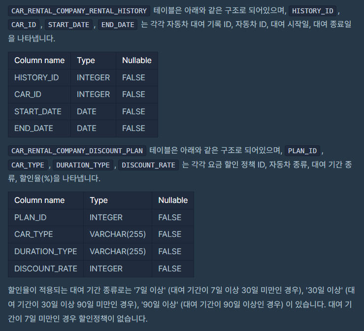 그래서 다시 단계별로 생각해보니 2 대여 가능 날짜에 대한 조건이 잘못 되었다는 것을 알았습니다.
