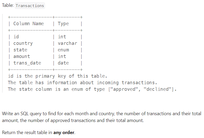 LeetCode 리트코드 | 1193. Monthly Transactions I (MySQL) 본문