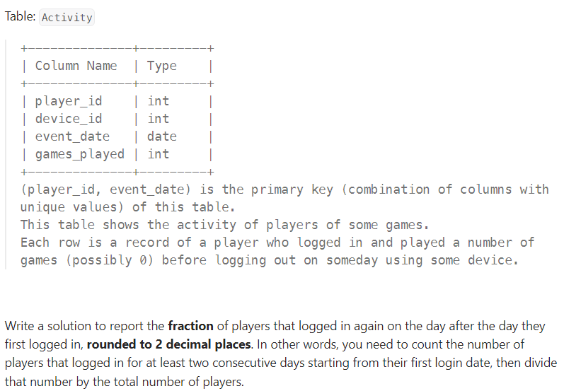 https://leetcode.com/problems/game-play-analysis-iv/description/