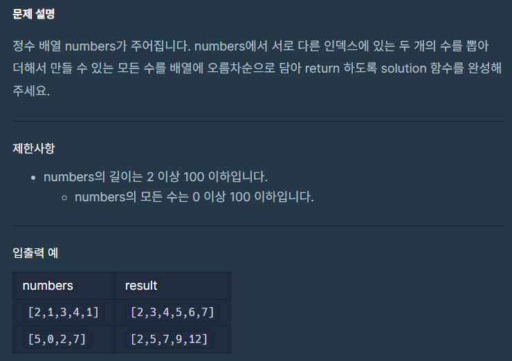 프로그래머스 | 두 개 뽑아서 더하기 (Python3) SET함수 본문