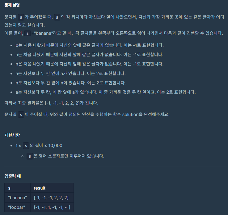 프로그래머스 | 가장 가까운 같은 글자 (Python3) 본문