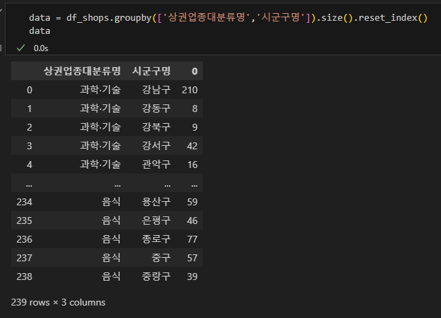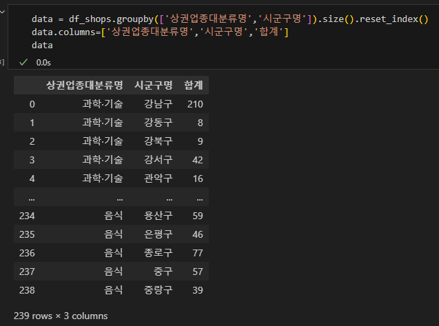 (사실 오랑이는 '상권업종대분류명', '시군구명' 두 개의 칼럼만 사용해야 하는 줄 알고 돌아서 어렵게 풀었답니다..)