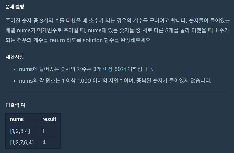 프로그래머스 | 소수 만들기 (파이썬) combination, 에라토스테네스의 체 본문