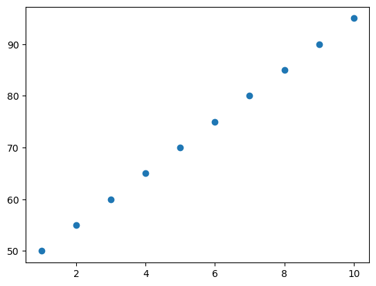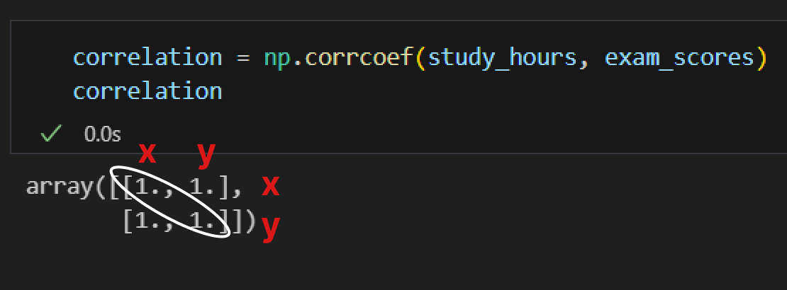 correlation = np.corrcoef(study_hours, exam_scores)[0, 1]