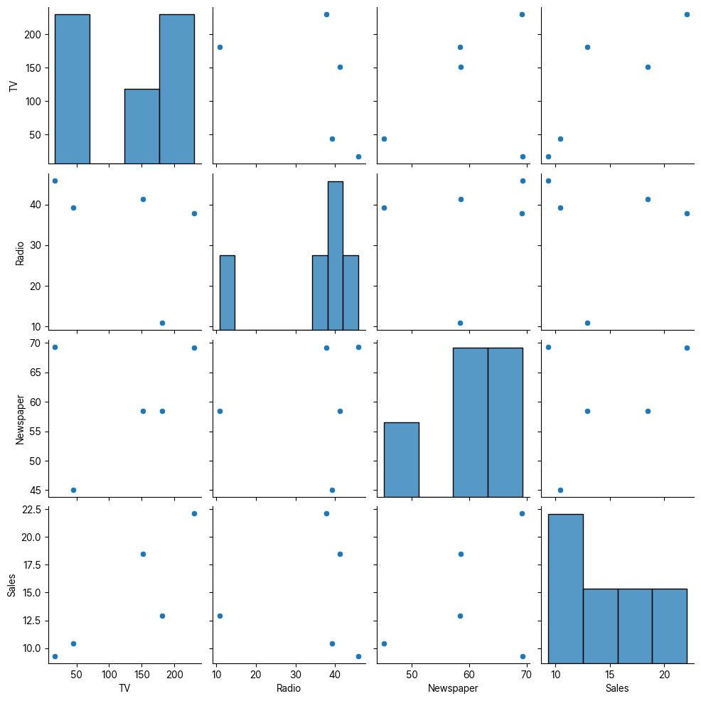ex) 여러 마케팅 채널의 광고비와 매출 간의 관계 분석