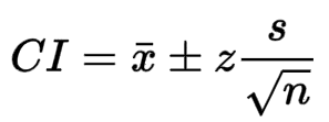 주로 95% 신뢰수준으로 사용, z=1.96 |