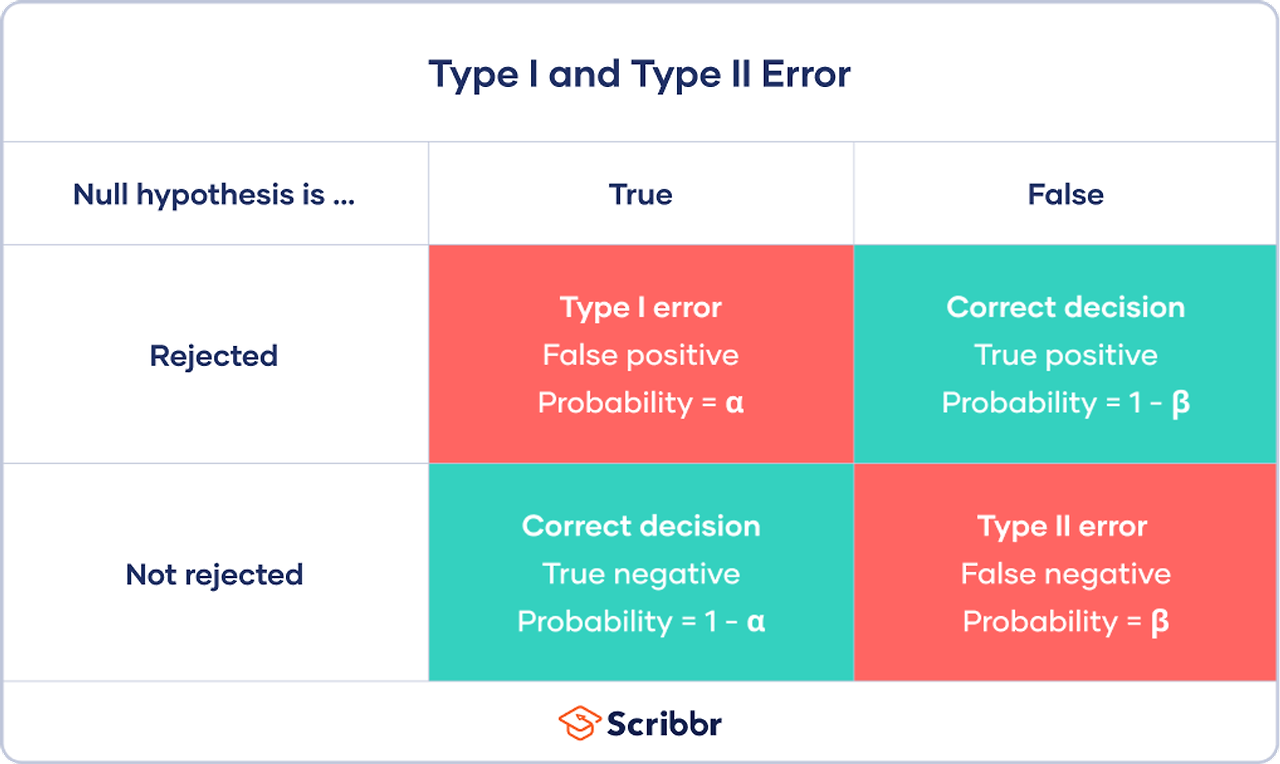 - 제2종 오류: 귀무가설이 거짓인데 기각하지 않는 오류