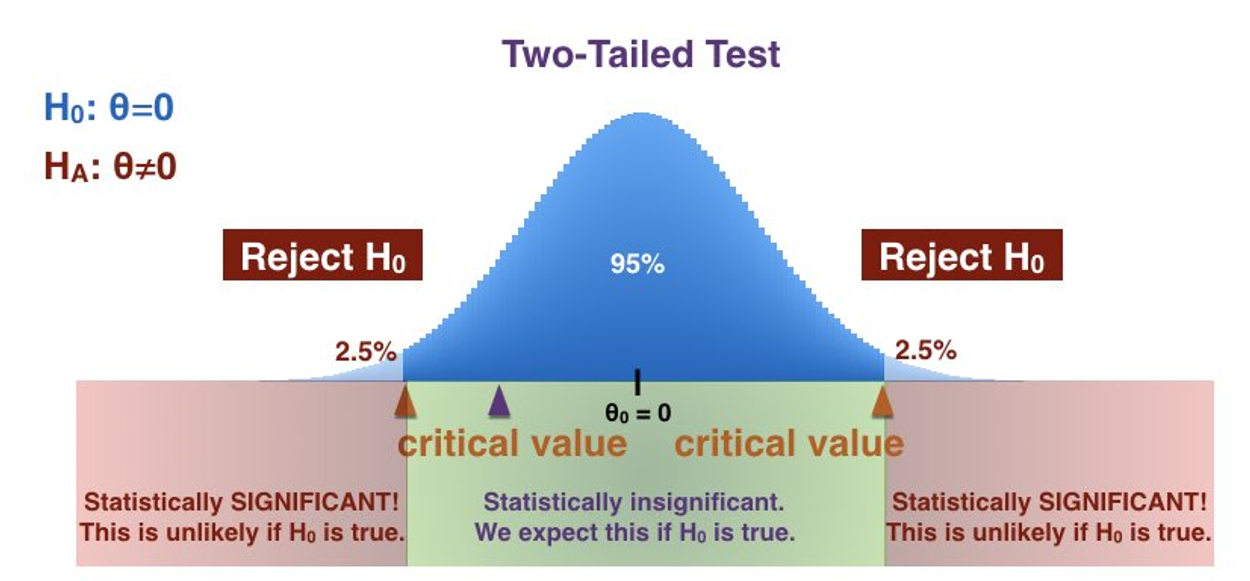 유의수준(α, 보통 0.05) 보다 작으면 유의성이 있다고 보아 귀무 가설을 기각하는 반면,