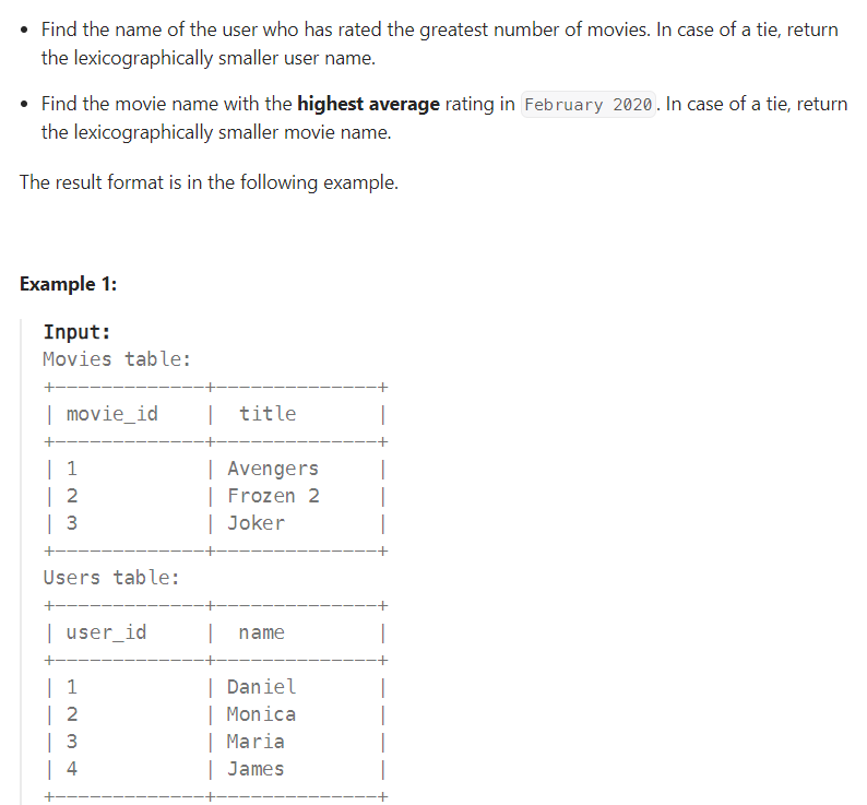 LeetCode 리트코드 | 1341. Movie Rating (MySQL) 본문