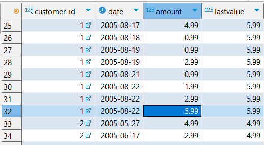 여러 예제로 실습해 보겠습니다. DB 는 오라클에서 제공하는 sakila 의 payment 테이블을 사용했습니다.
