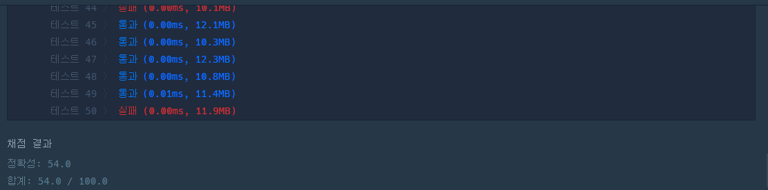 처음엔 입출력 예시만 고려한 채로 아래와 같은 코드로 풀었습니다.