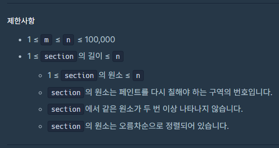 start = i + m # 어차피 안 칠해진 부분 section 첫번째부터 시작하는 거기 때문에 m 만큼 더하기