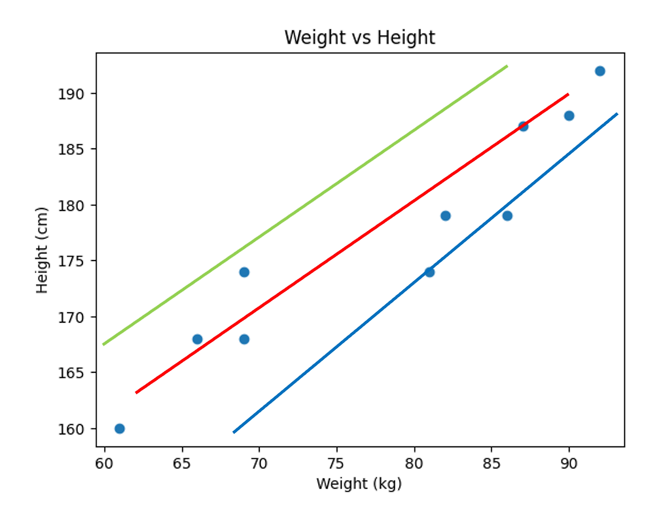 키(Y)와 몸무게(X) 분포가 아래와 같이 있다고 가정해봅시다.