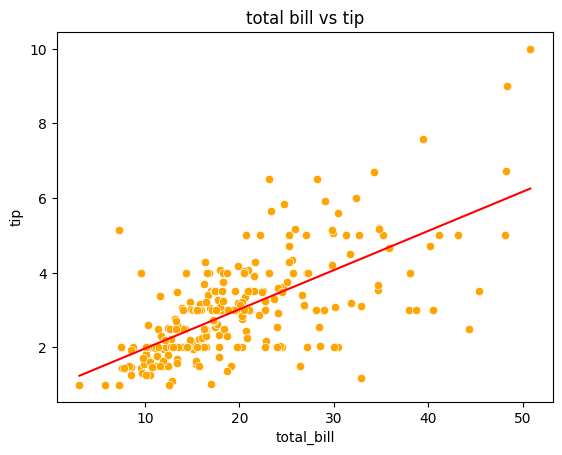이때 만든 예측 데이터를 tips_df 에 칼럼으로 추가해준 후 앞서 그렸던 산점도에 직선으로 시각화할 수 있습니다.
