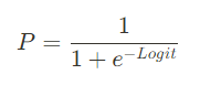 로짓을 P에 대해 정리하면 아래의 식이 되어 로짓의 범위는 [−∞,∞] 확률의 범위는 [0,1] 이 됩니다.