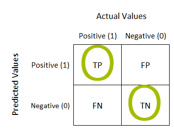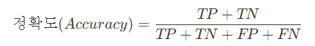 여기서 TP 와 TN 만이 올바르게 분류된 경우입니다.