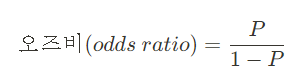 확률 P에 대해 오즈비는 다음과 같이 정의됩니다.