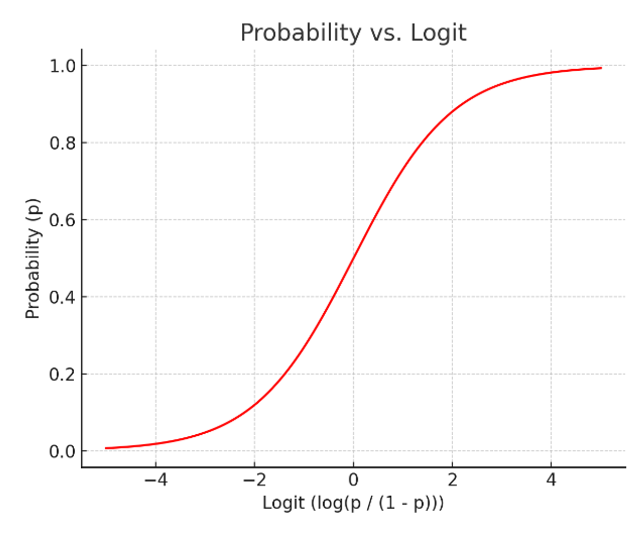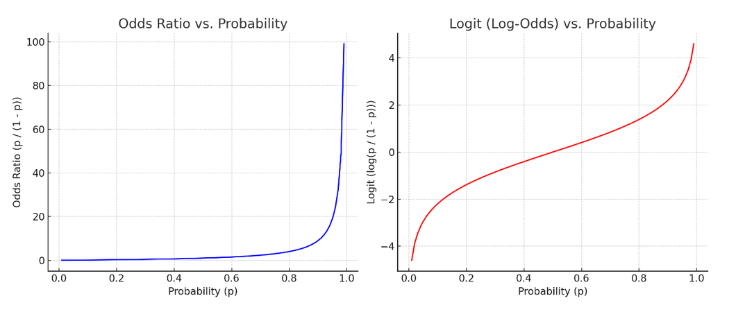 이를 해결하고자 오즈비에 로그를 씌워서 확률의 증가에 따라 완만하게 증가하도록 해주고 이를 로짓이라 정의합니다.