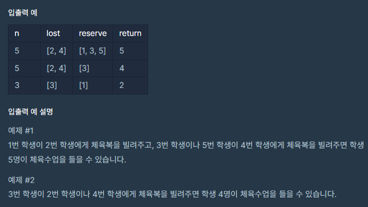 즉 lost와 reserve 의 교집합을 제거하면 되는데, 지난 문제에서 set 함수의 교집합을 사용했던 거와 비슷하게 이번에는 차집합으로 lost와 reserve 의 공통된 숫자를 제거해줍니다.