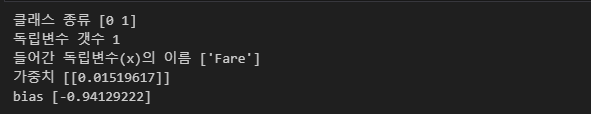 여기서 생존할 확률이 0.5 미만이면 0, 0.5 이상이면 1로 출력됩니다.